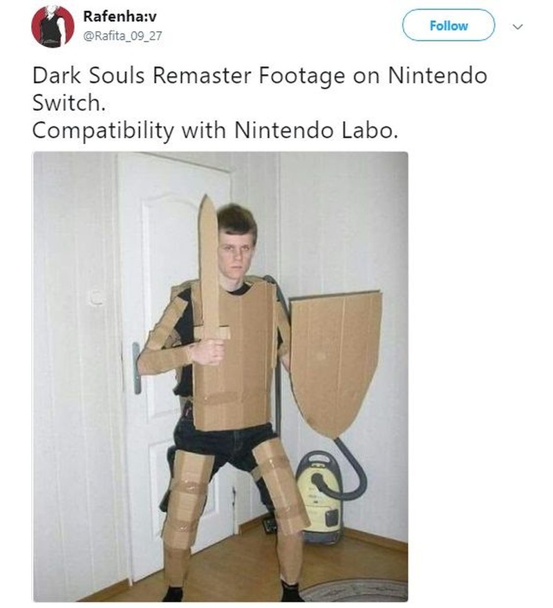 Nah, kalo ini bocoran Dark Souls Remastered di Labo. (Foto: Twitter)