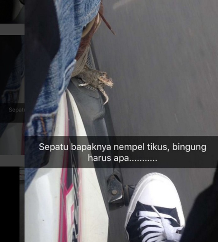 Duh! Kayanya ada yang nyangkut di sepatu abang ojeknya. (Foto: Instagram/dramaojol.id)