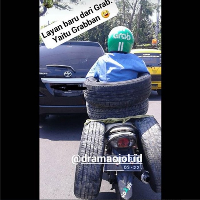 Bisa aja nih driver pakai jaket polisi, biar gak kena tilang?Β (Foto: Instagram/dramaojol.id)