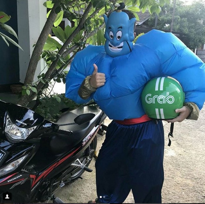 Ada abang jin nih, tapi helmnya muat di kepala gak tuh ya.Β (Foto: Instagram/dramaojol.id)