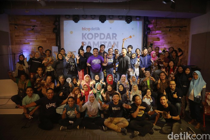 Para anggota dari komunitas blogdetik serta para pendiri blogdetik berfoto bersama saat berlangsungnya acara Kopda Pamitan Blogdetik, Akhiri Dengan Indah di Jakarta, Sabtu (20/1/2018).