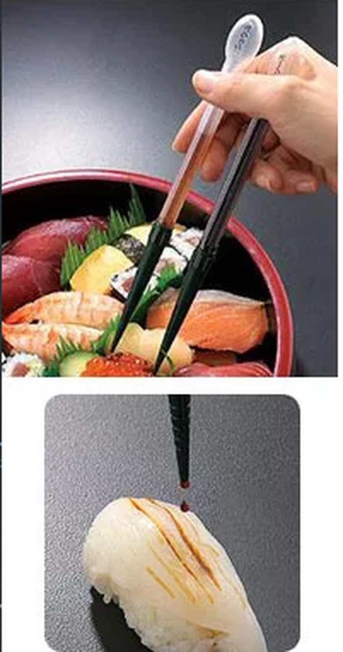 Sumpit yang juga berfungsiΒ untuk menampung kecap asin. (Foto: Brightside)