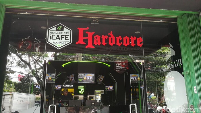 Hardcore menjadi satu dari beberapa warnet yang masuk dalam program GeForfe-Certified iCafe. Warnet ini terletak di Jalan Dieng, Malang, Jawa Timur. Foto: detikINET/Muhammad Alif Goenawan