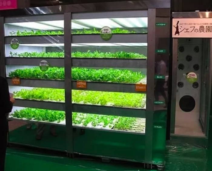 Di Jepang, ada vending machine selada yang benar-benar segar karena tumbuh di dalamnya. Foto: istimewa