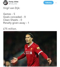 Jakarta - Pertahanan Liverpool justru bertambah buruk setelah kedatangan bek anyarnya yang dibeli sangat mahal, Virgil Van Dijk, sehingga jadi bahan candaan netizen.