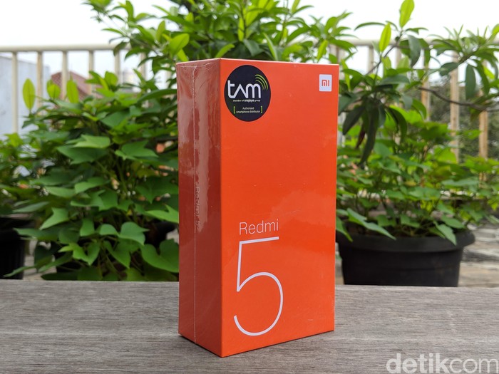 Seperti tipikal ponsel Xiaomi lain, kotak kemasan Redmi 5 berbalut warna oranye. (Foto: detikINET/Adi Fida Rahman)