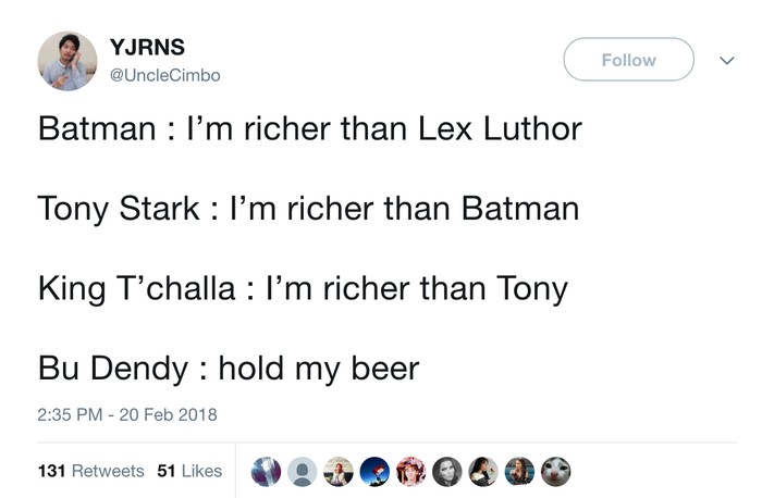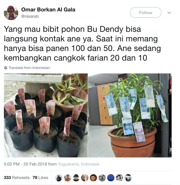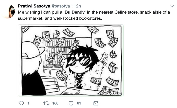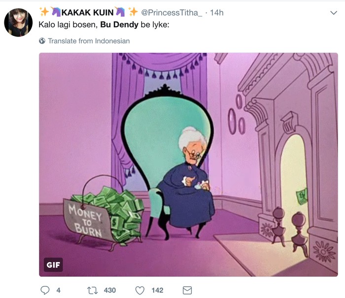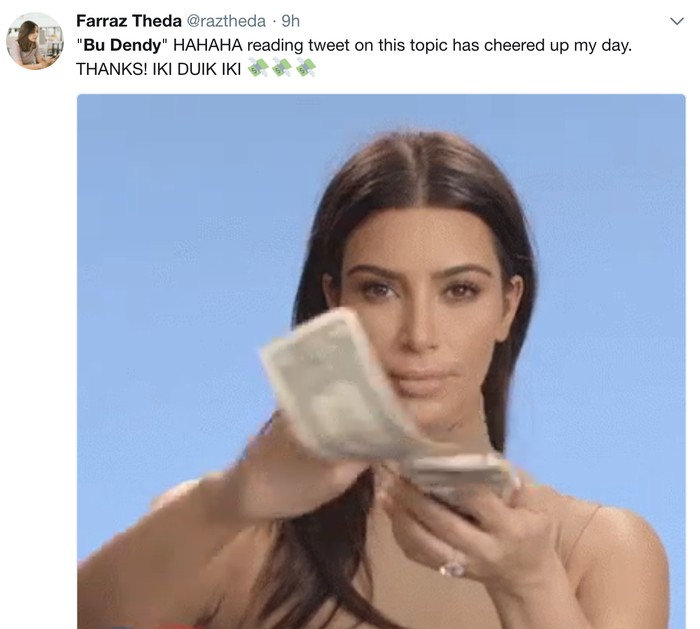 Bu Dendy seharian jadi trending topic di Twitter. Keriuhan wanita yang sebar-sebar duit ini pun ramai diparodikan dalam bentuk meme-meme lucu oleh para netizen.