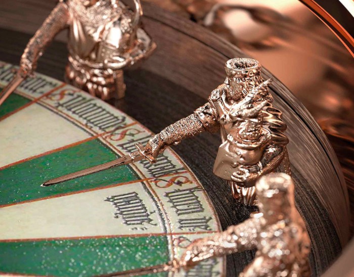 Jam Excalibur Watch diberi hiasan ksatria meja bundar zaman King Arthur. Foto: Brightside