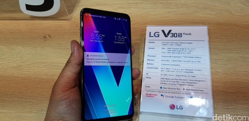 Namun, dari prosesor dan baterai V30S ThinQ masih menggunakan komponen yang sama seperti V30, yakni Snapdragon 835 dan baterai 3.300 mAh. (Foto: detikINET/Achmad Rouzni Noor II)