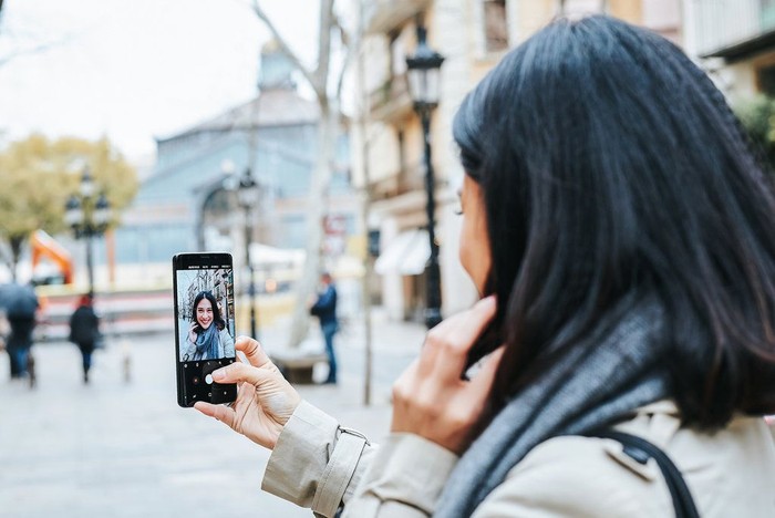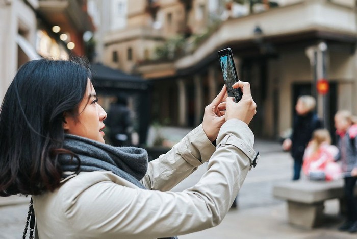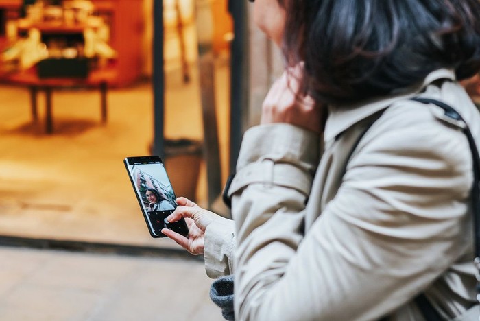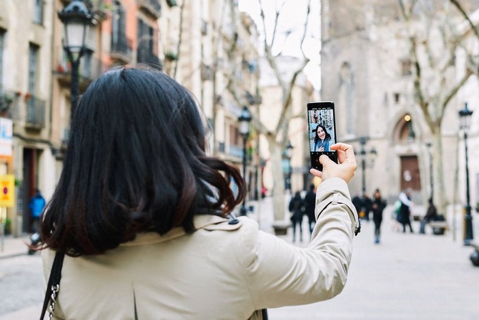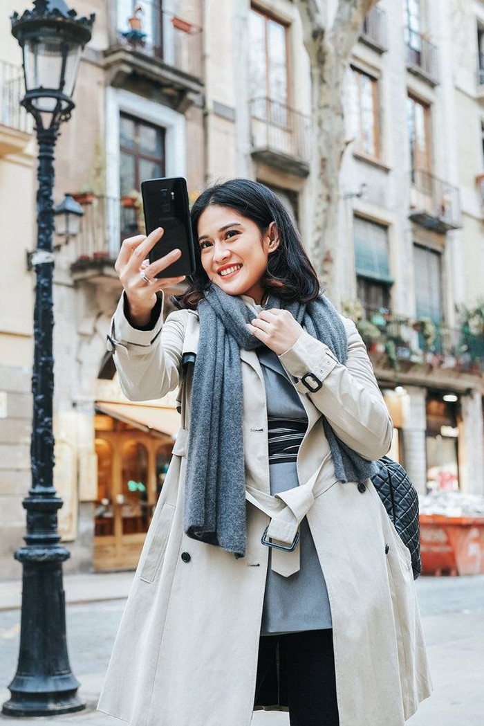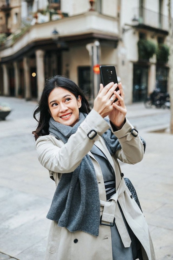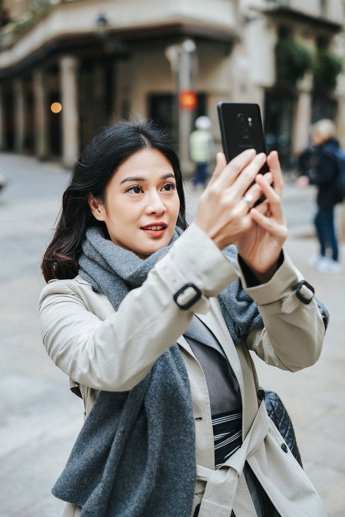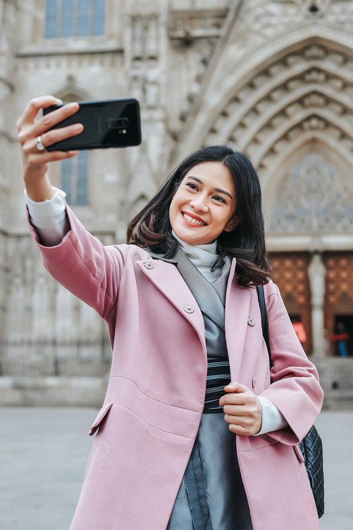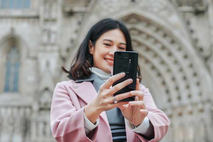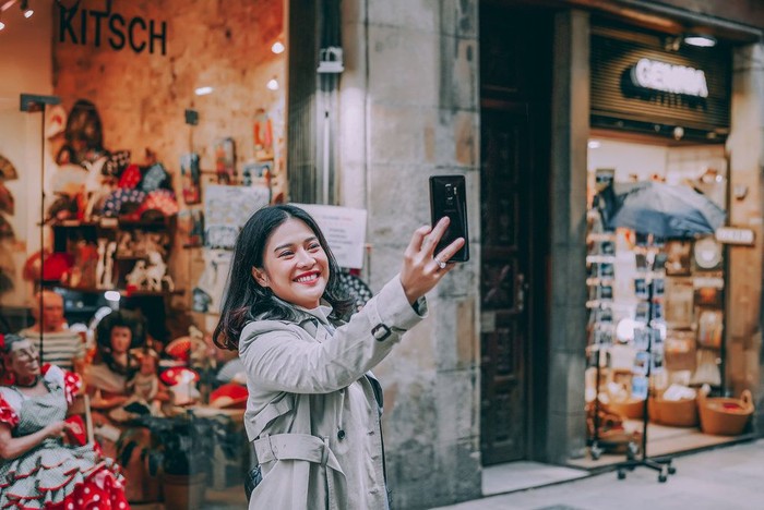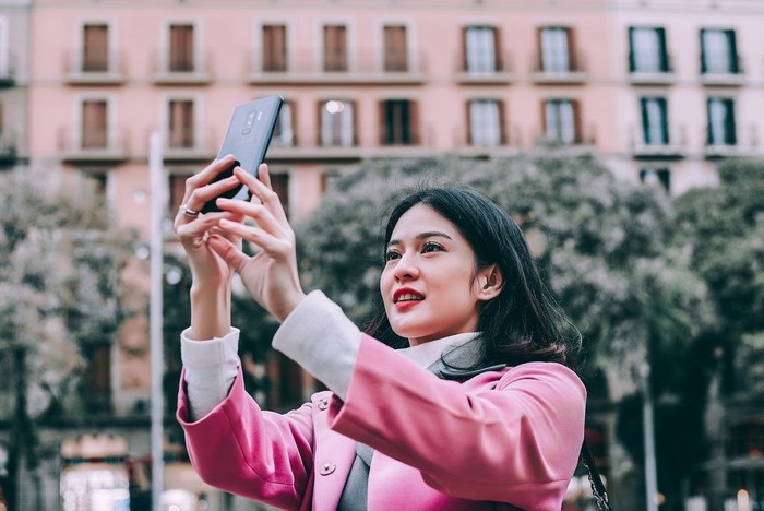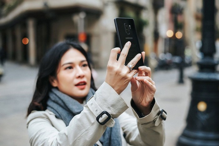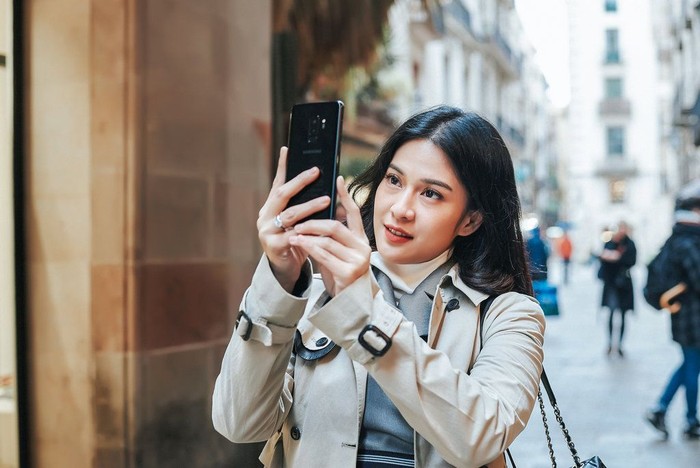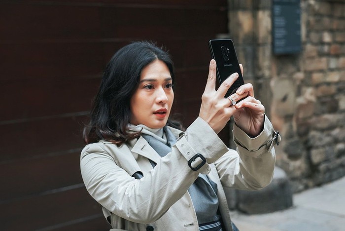 Setelah dirilis 26 Februari lalu, Dian Sastro sempat menjajal Galaxy S9+ sembari berkeliling kota Barcelona. Foto: Samsung