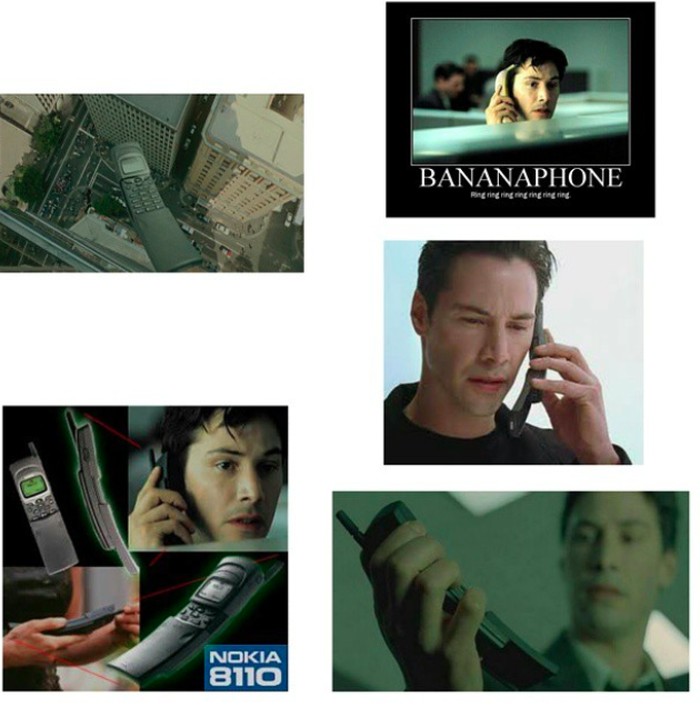 Selain julukan ponsel pisang karena bentuknya melengkung, Nokia 8110 juga kadang dijuluki Matrix Phone karena tampil di film The Matrix. Foto: Instagram