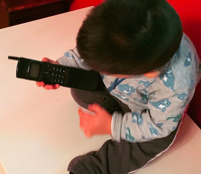 Anak masa sekarang yang mungkin kebingungan melihat Nokia 8110. Foto: Instagram