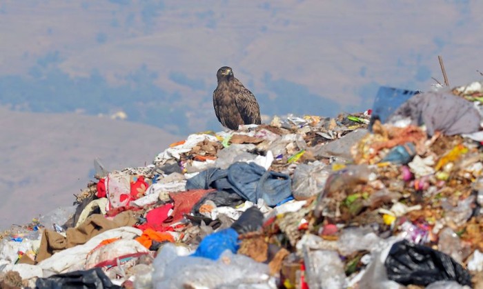 BurungΒ elang yang habitatnya dipenuhi sampah. (Foto: Boredpanda)