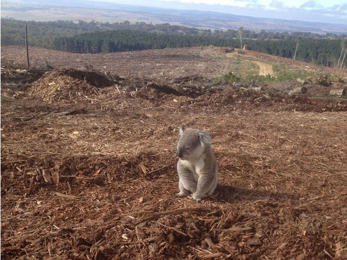 Ekspresi sedih Koala yang kehilangan rumahnya rata dengan tanah. (Foto: Boredpanda)