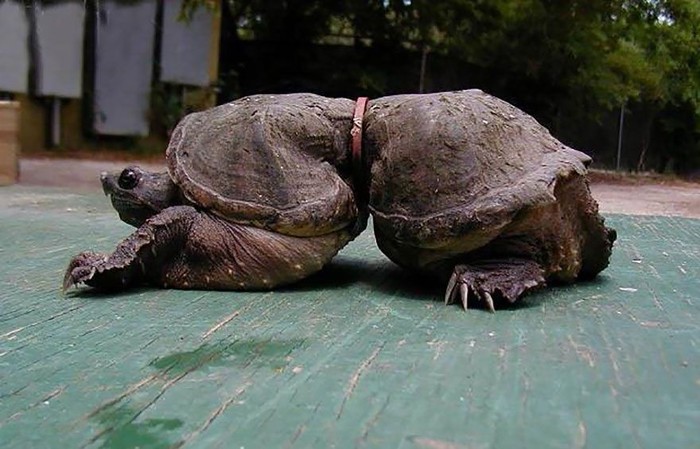 Kasihan! cangkang penyu ini harus terjepit tali plastik. (Foto: Boredpanda)