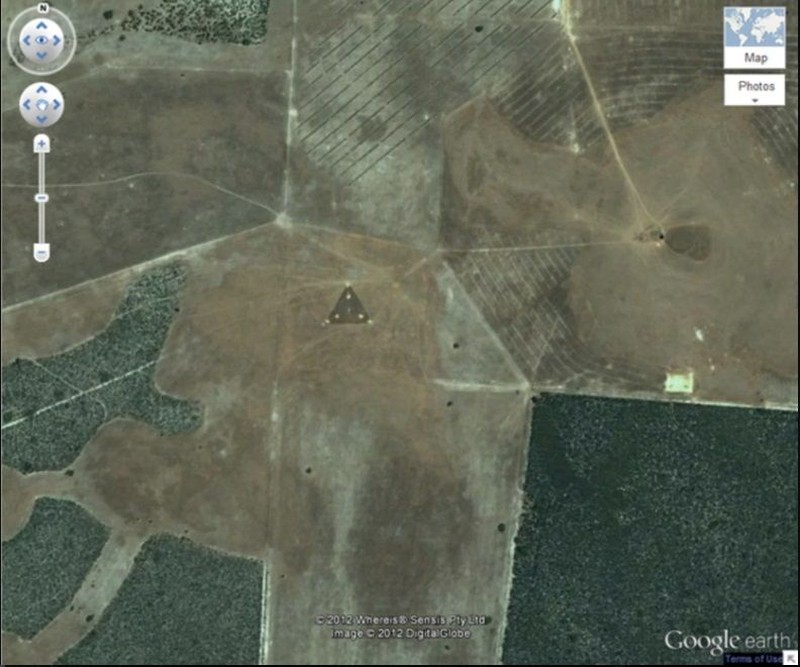 Sebuah kawasan di Australia sempat memperlihatkan sebuah segitiga yang dianggap sebagai UFO, namun sudah tidak tampak lagi di Google Earth, dan digantikan oleh sejumlah kincir raksasa. Foto: istimewa