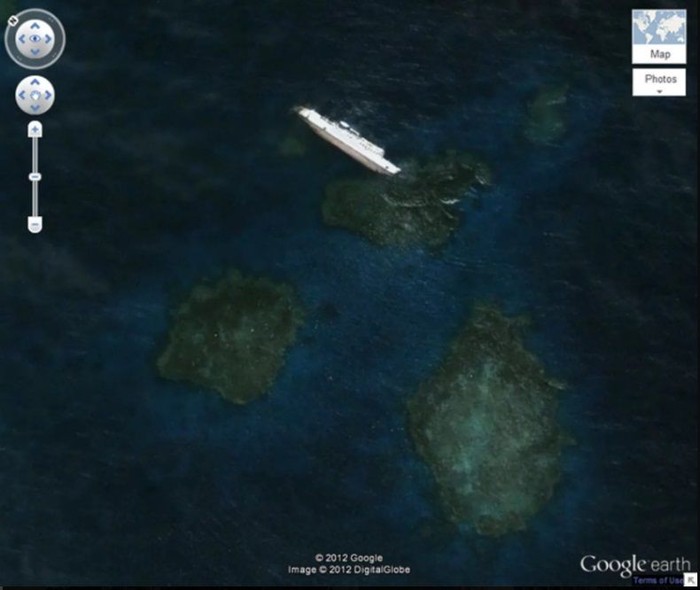 Setelah tenggelam di lepas pantai Sudan pada 2003, kapal S.S. Jassim dari Bolivia ini sempat tampak jelas di Google Earth. Foto: istimewa