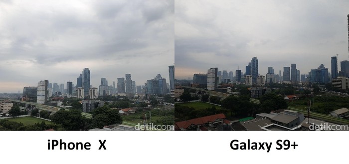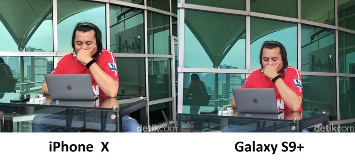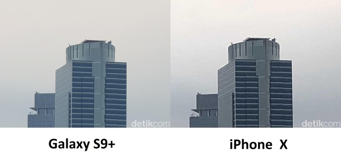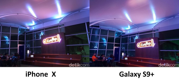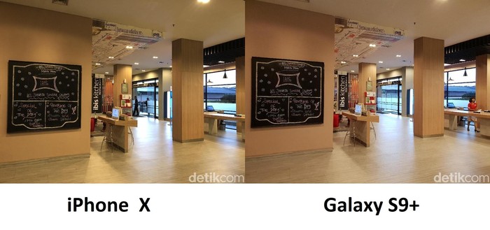 Foto sebelah kiri diambil dari Galaxy S9+, sedangkan foto kanan hasil jepretan iPhone X. Foto: Adi Fida Rahman/detikINET