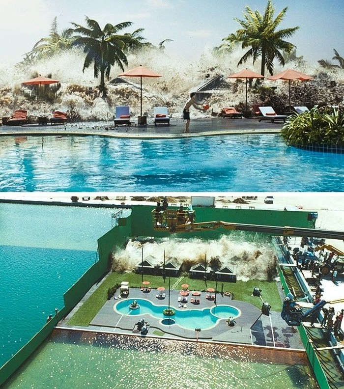 Kolam renang yang diterjang badai pada film The Impossible yang ternyata cocok untuk mainan barbie. (Foto: Brightside)