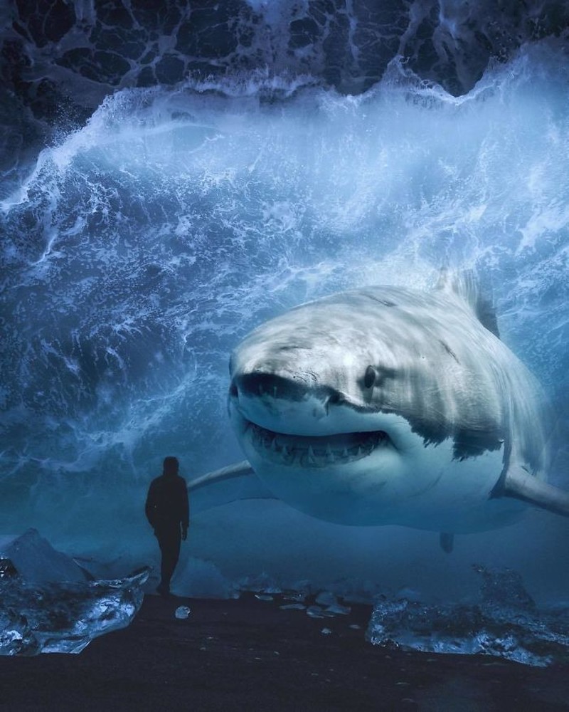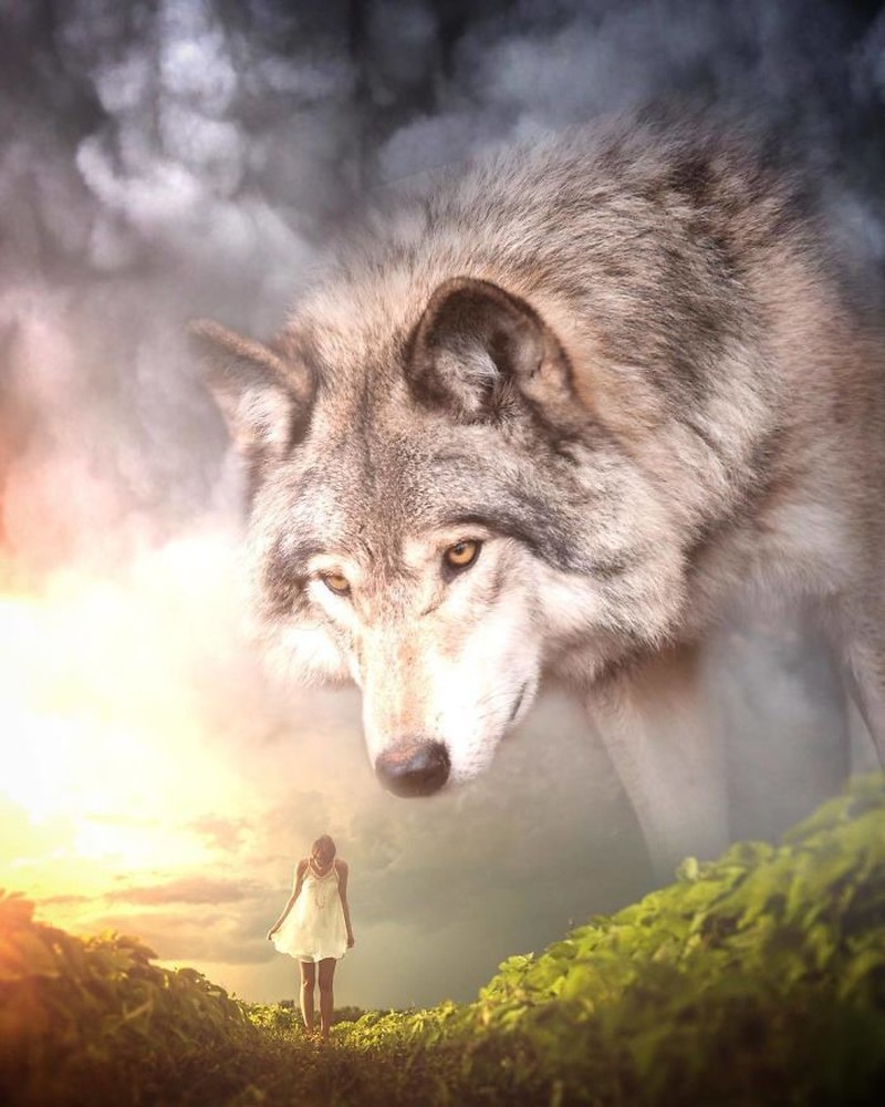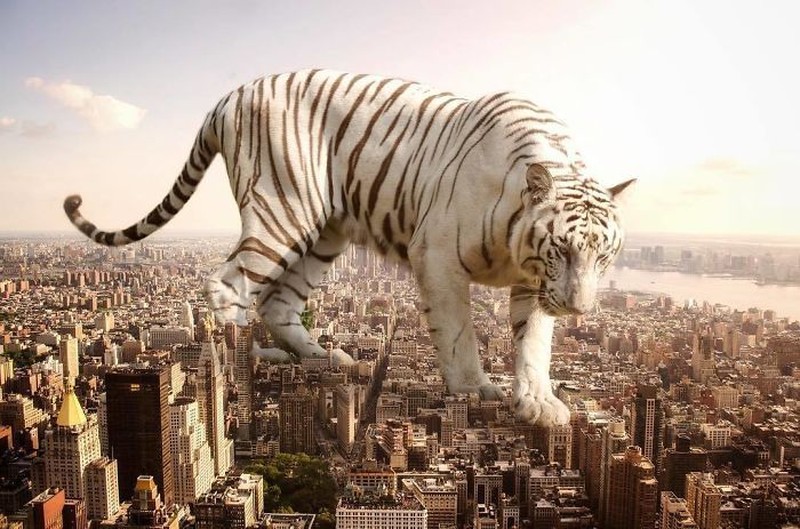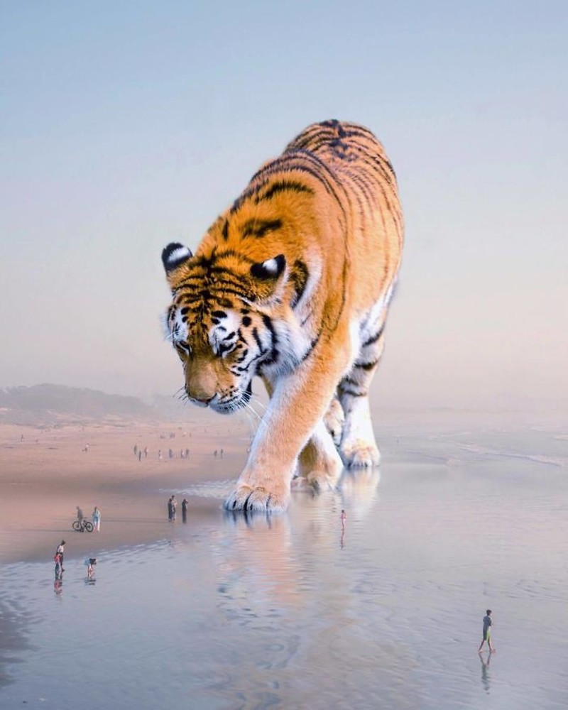Ia membuat manipulasi foto dengan membuat hewan terlihat super besar dan manusia dibuat berukuran kecil. (Foto: Ebenism)