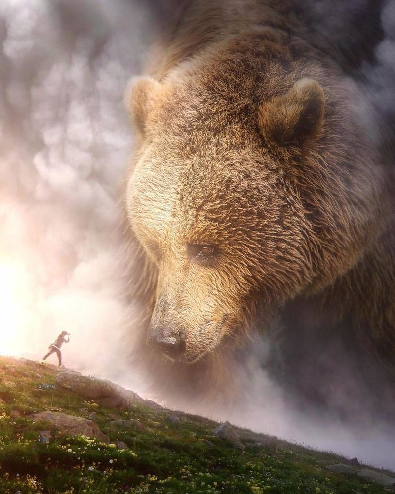Tatapan beruang melihat manusia yang mungil. (Foto: Ebenism)
