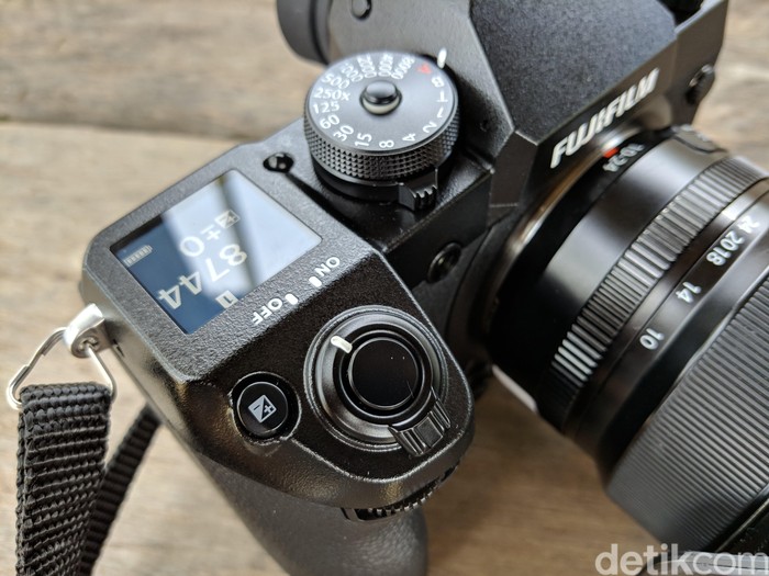 Kamera X-H1 turut dilengkapi sub-LCD berukuran 1,28 inch di bagian kanan atas bodi kamera. Gunanya dapat memberikan informasi pemotretan lebih cepat. Foto: Adi Fida Rahman/detikINET