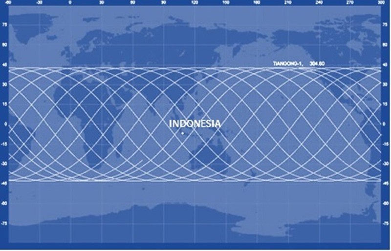 LAPAN menyebutkan di wilayah pada rentang 43 derajat lintang utara sampai 43 derajat lintang selatan, termasuk Indonesia. Foto: China Manned Space Agency