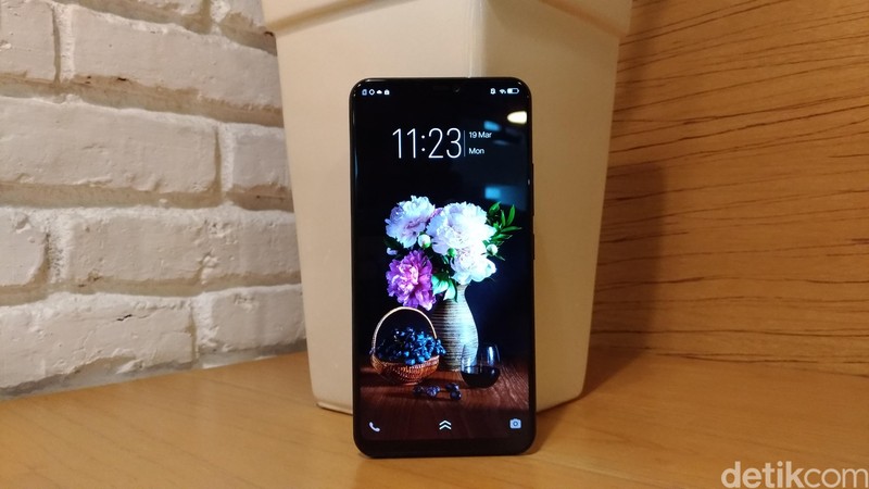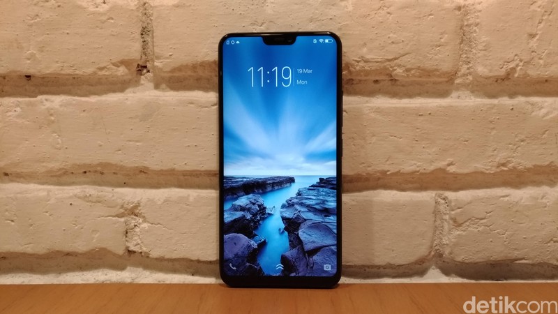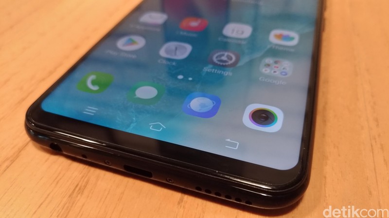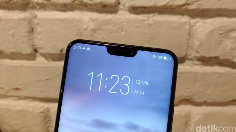 Smartphone yang memiliki notch ala iPhone X tersebut mulai diperkenalkan hari ini, Senin (19/3/2018). Foto: detikINET/Moch Prima Fauzi