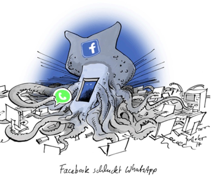 Facebook dan anak usahanya seperti WhatsApp sudah sangat menggurita mengontrol jagat internet dunia. Foto: Pinterest