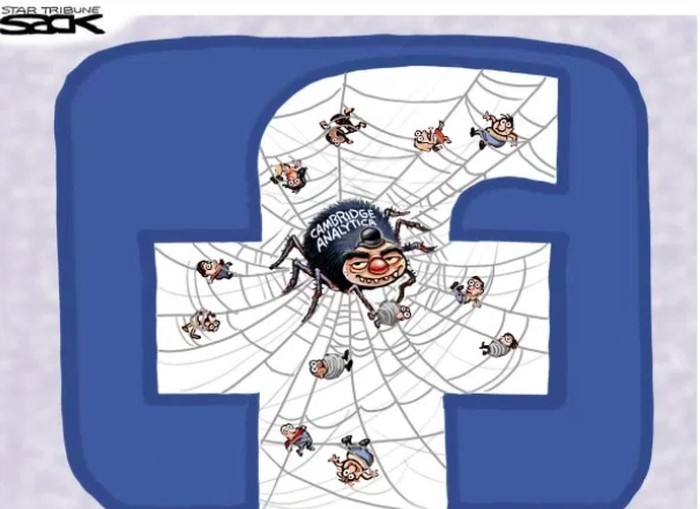 Kalau ini menyindir kejadian terbaru di mana 50 juta data user Facebook diangkut oleh perusahaan Cambridge Analytica untuk kepentingan kampanye Donald Trump. Foto: Pinterest