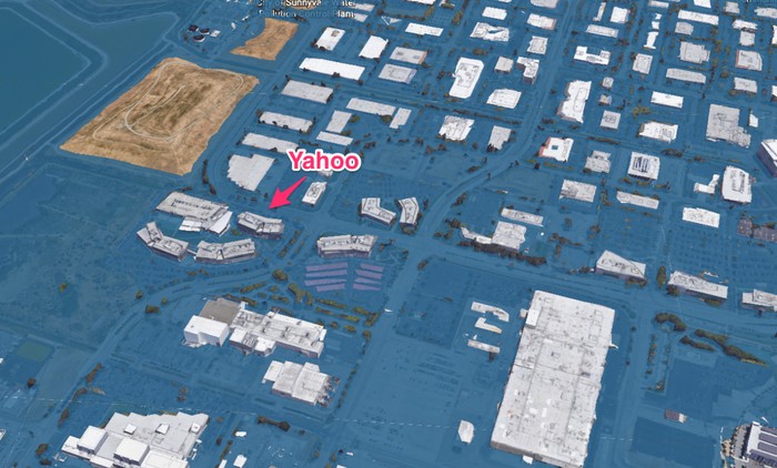 Kantor Yahoo yang ada di Sunnyvale tidak akan jauh lebih baik dari Facebook di 2100. Foto: Google Earth via Business Insider