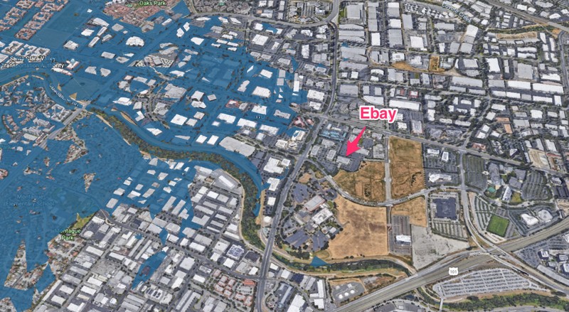 Air laut yang naik ini hanya akan membuat eBay memiliki 'pantai' dari jarak dekat. Foto: Google Earth via Business Insider