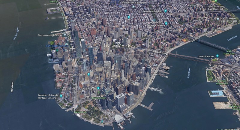 Selain San Francisco, New York juga tak luput dari terjangan bencana alam ini. Foto: Google Earth via Business Insider