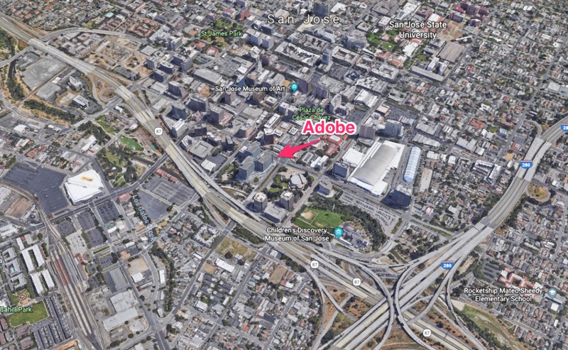 Adobe dan perusahaan yang ada di San Jose diprediksi selamat dari bencana alam ini. Foto: Google Earth via Business Insider