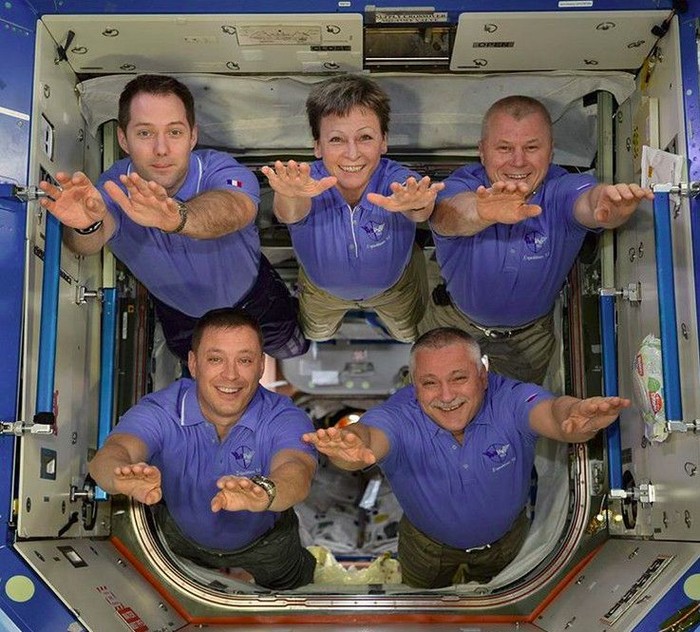Thomas bertugas di stasiun luar angkasa selama 6 bulan. Ini adalah foto perpisahan dengan teman-teman satu timnya saat dia harus kembali ke Bumi. Foto: Instagram @thom_astro