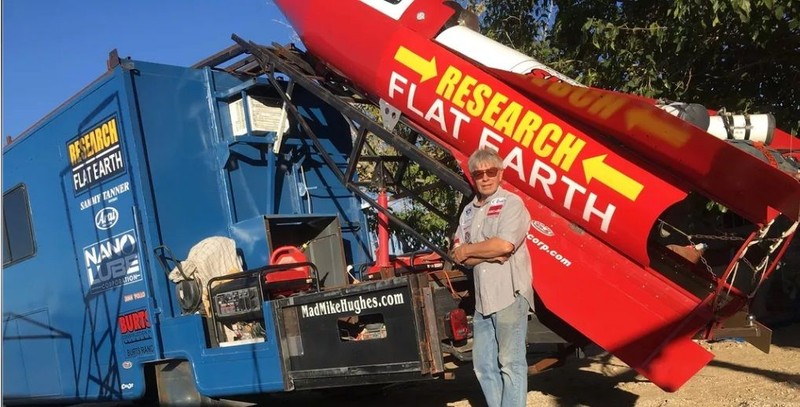 Keberhasilannya untuk membuat roket dengan awak yang dapat terbang pun patut diacungi jempol karena dirinya merupakan seorang supir limosin, walau ia tidak mengatakan apakah Bumi memang datar setelah penerbangannya tersebut. (Foto: madmikehughes)