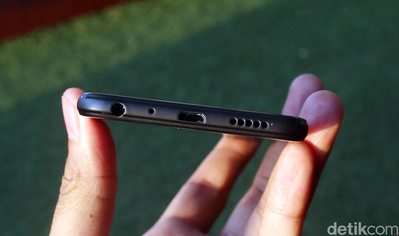 Bagian bawah terdapat port jack audio 3,5 mm, microUSB dan speaker. Foto: Rachman Haryanto