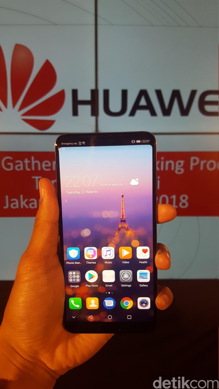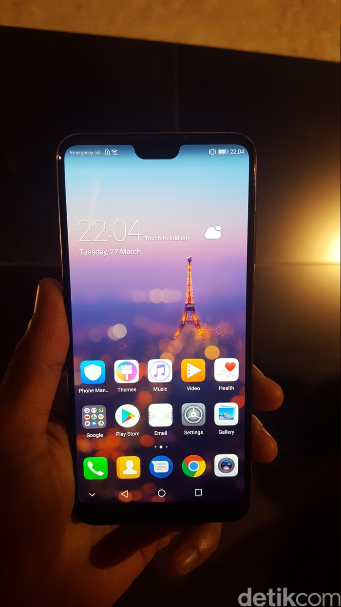 Layaknya iPhone X, P20 Pro juga memiliki notch di bagian atas ponselnya. (Foto: detikINET/Muhamad Imron Rosyadi)