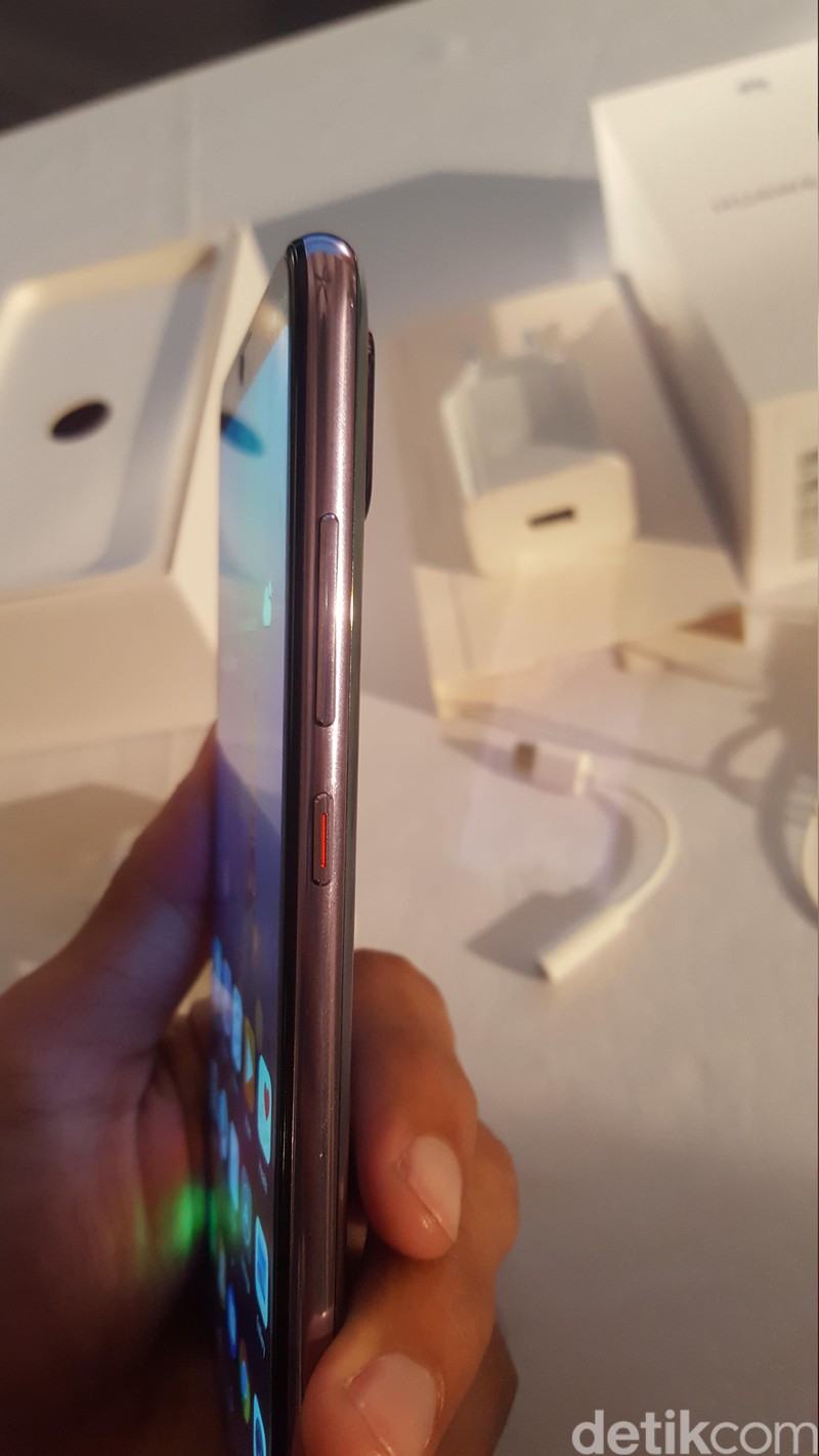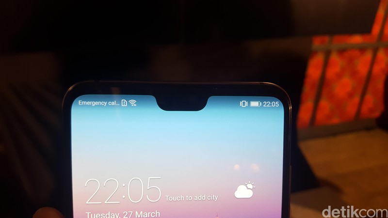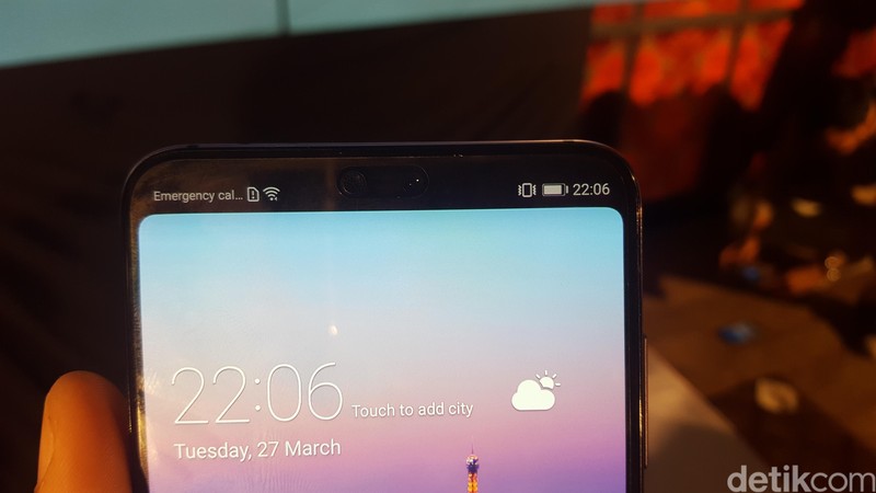 Layaknya iPhone X, P20 Pro juga memiliki notch di bagian atas ponselnya. (Foto: detikINET/Muhamad Imron Rosyadi)