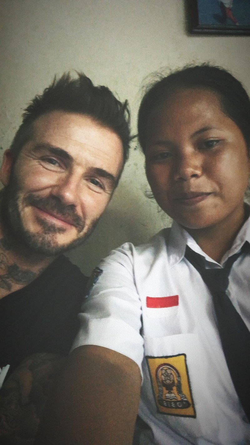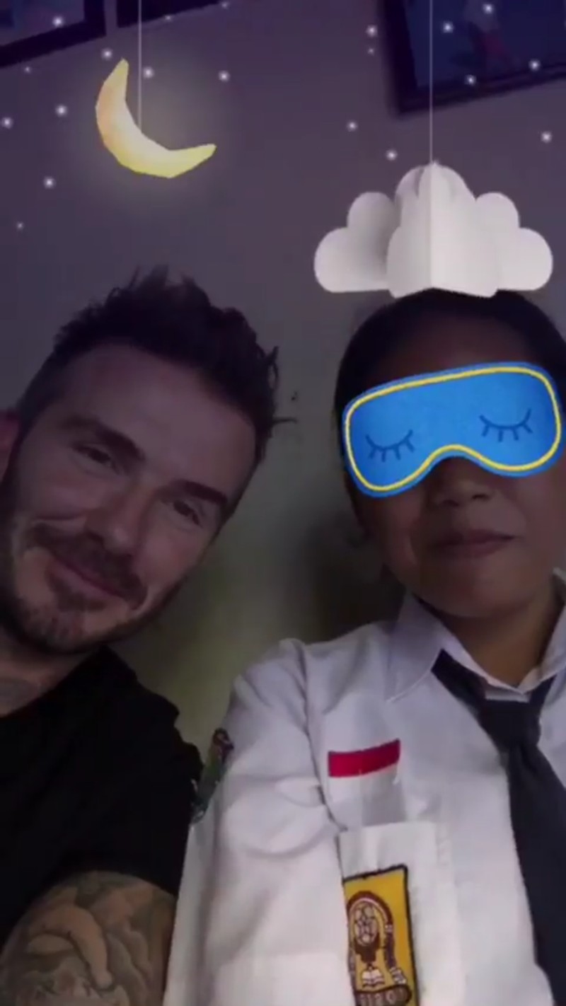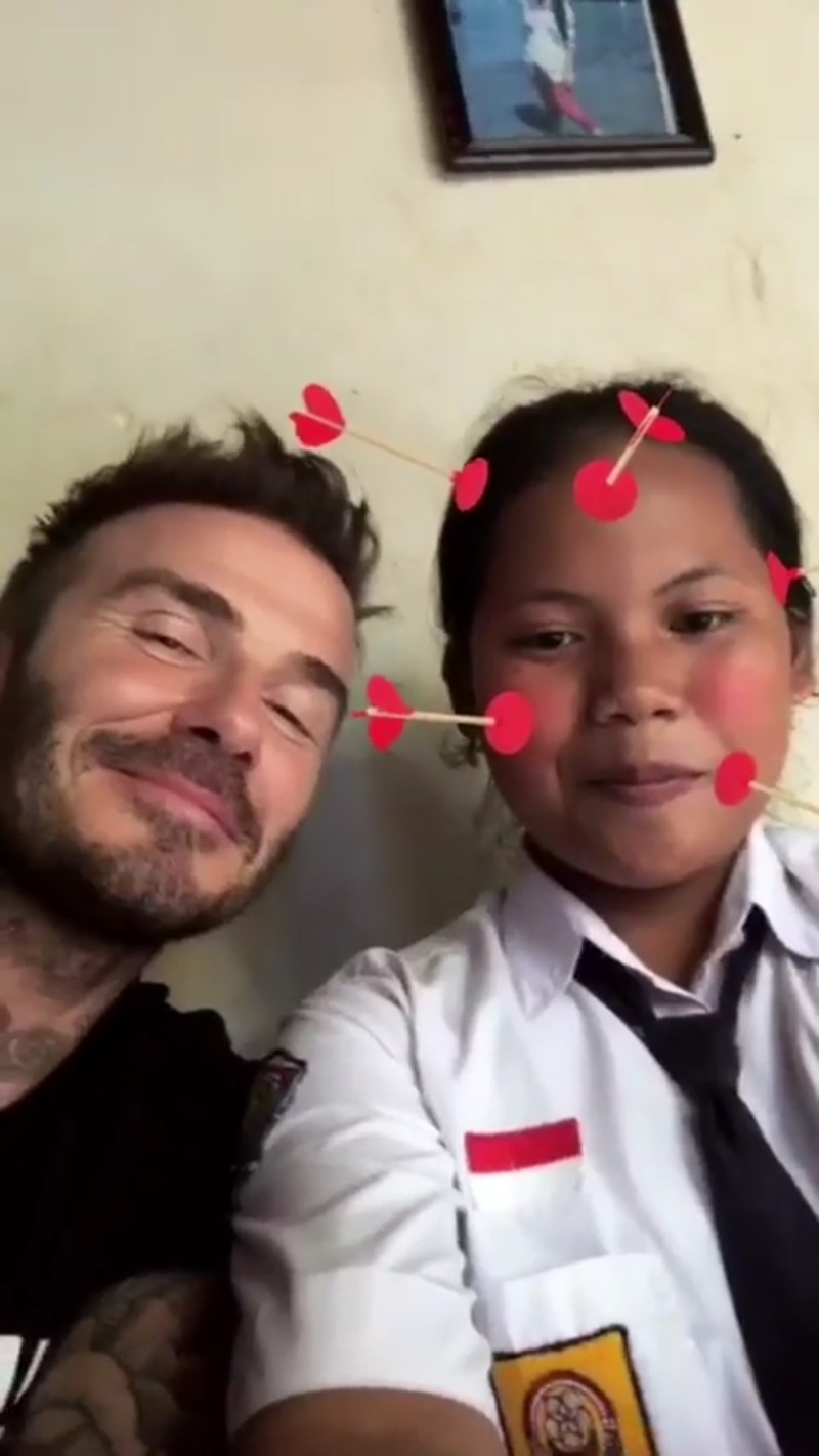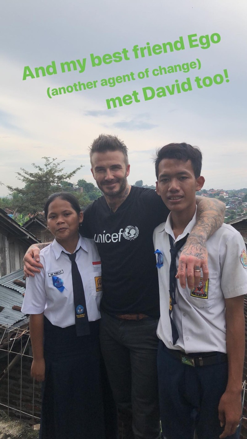 Teman Sripun yang kecipratan bisa foto bareng dan muncul di IG Stories Beckham. (Foto: Instagram)