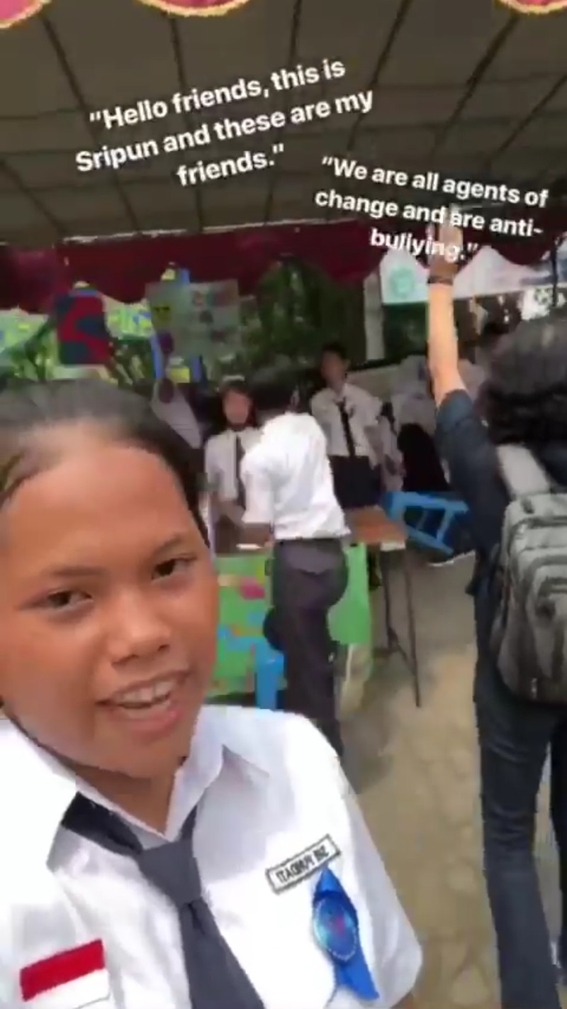 Dalam postingannya ini Sripun memperkenalkan teman-teman sekolahnya dan mengenalkan dirinya sebagai anggota agen perubahan dan anti bullying. (Foto: Instagram)