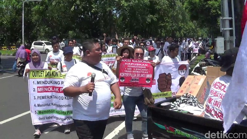 Aksi serupa pun terjadi di Denpasar, Bali. Ratusan pengelola outlet pulsa di Denpasar menggelar aksi unjuk rasa menolak pembatasan registrasi SIM card. Foto: Nadhang Astika/detikcom