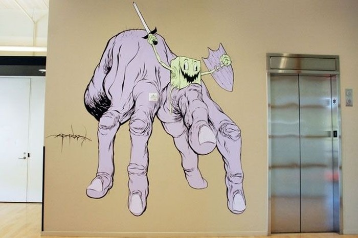 Tembok-tembok yang dihiasi dengan lukisan mural. Kantor YouTube dilengkapi banyak fasilitas yang memanjakan karyawan. Foto: Huffingtonpost