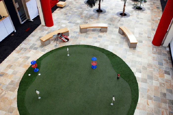 Yotube pun menghadirkan sejumlah fasilitas olahraga untuk karyawannya, seperti ini adanya lapangan golf mini. Β (Foto: Huffingtonpost)