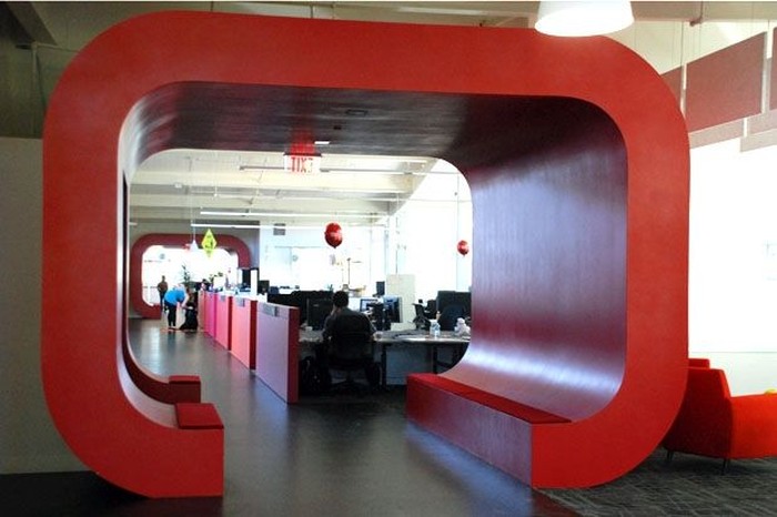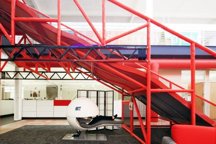 Sesuai dengan warna brand yang diusung, kantor YouTube ini didominasi dengan warna merah.Β (Foto: storyepic)