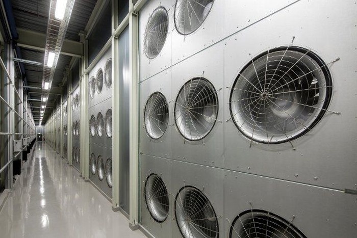 Sistem pendingin server di dalam ruangan. Sistem pendingin antara lain mengandalkan udara dingin dari luar karena letaknya yang dekat dengan kutub utara.Β (Foto: Facebook)