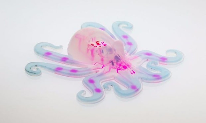 Octopus. Robot yang dibuat Harvard’s Wyss Institute ini meniru octopus atau gurita. Seluruh tubuhnya berbalut material silikon sehingga lentur. Di dalam setiap tentakelnya juga dibenamkan reaksi kimia mirip seperti gurita sungguhan. Foto: Harvard Wyss Institute