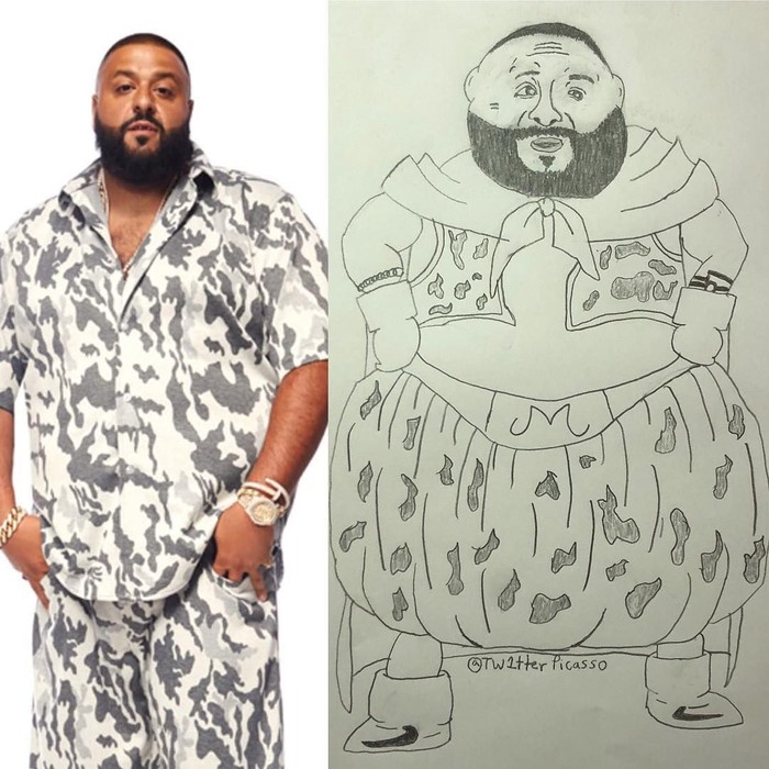 DJ Khaled malah digambarkan mirip karakter Majin Bhu di kartun Dragon Ball. Foto: instagram.com/tw1tterpicasso