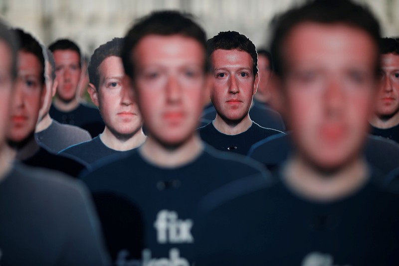 Para pendemo menampilan sosok Zuckerberg. Foto: Reuters