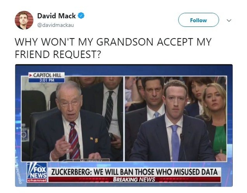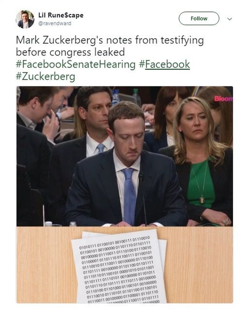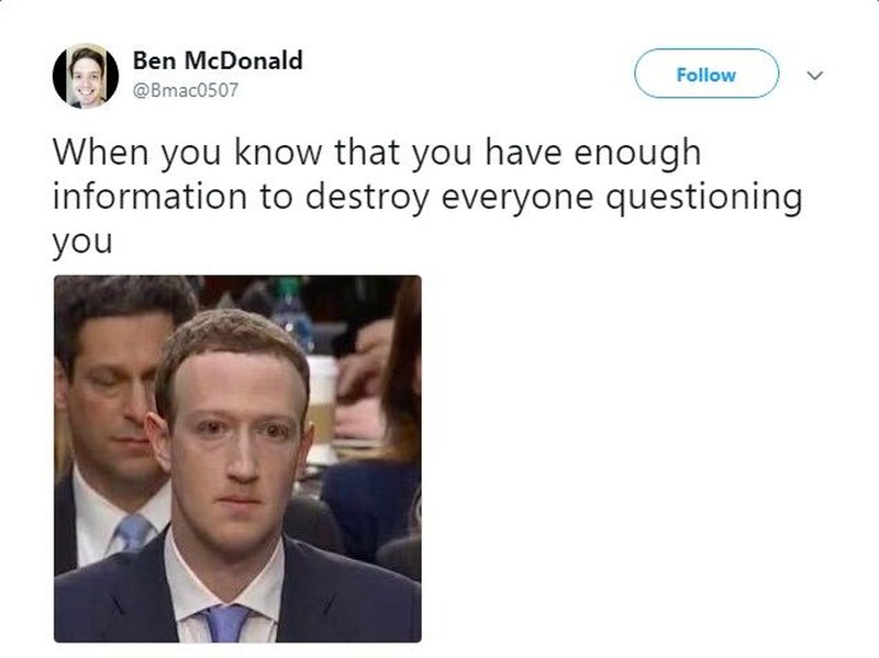 Apa pun yang ditanya oleh para Senator, sepertinya Zuckerberg sudah tahu semua. (Foto: Twitter)